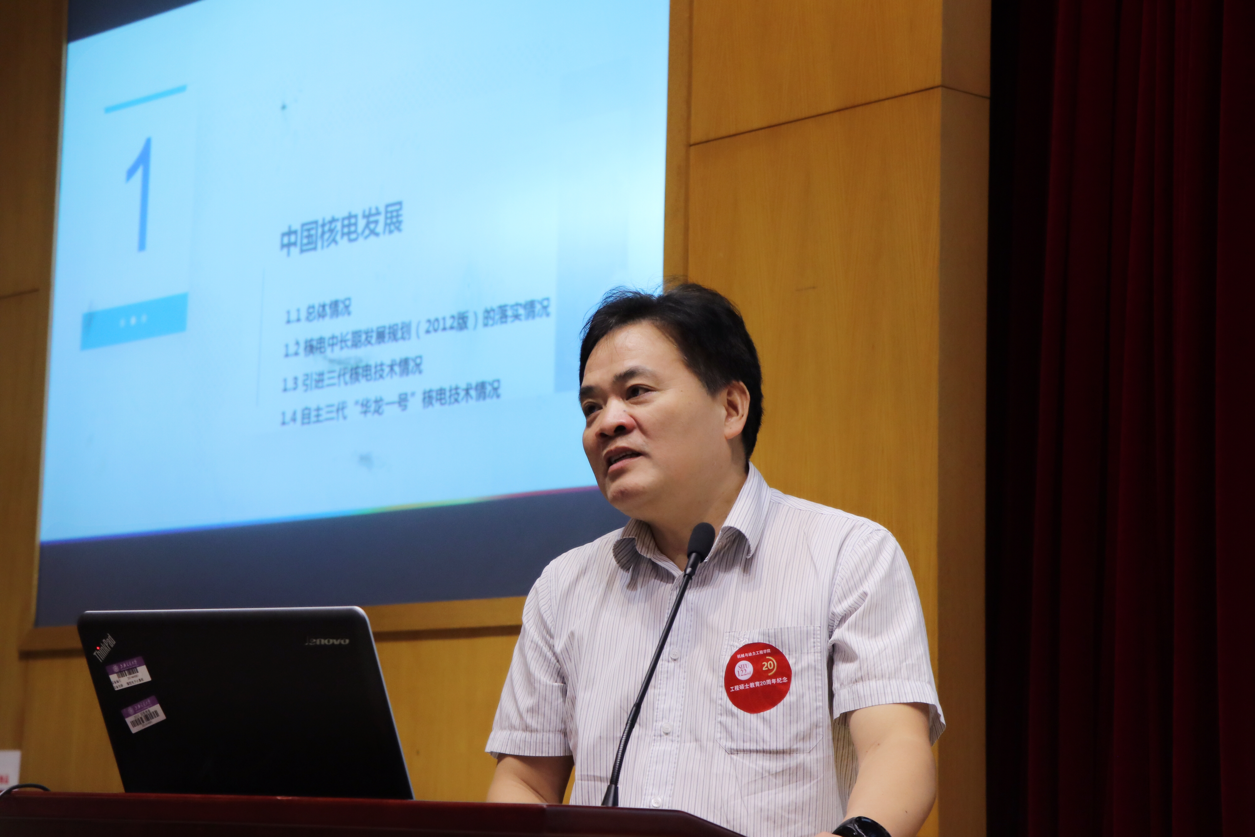 最后,由2003级核能与核技术工程校友,华龙国际核电技术有限公司党委书记,总经理徐鹏飞先生为大家介绍了核电行业的现状, 自主三代“华龙一号”核电技术情况,提出了对于整个行业的思考与建议,他表示:核电发展需要一个相对稳定的节奏,并且要注重人才培养,还要全面提升核电在全球的竞争力,包括经济性和核心技术等方面。